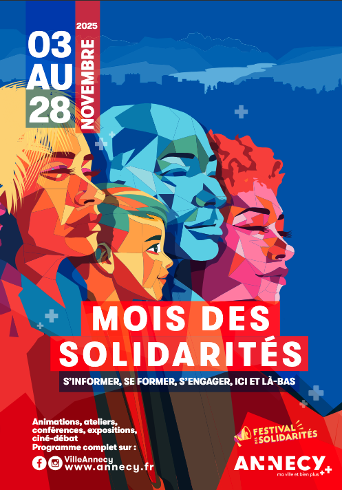 À l’occasion de la deuxième édition du Mois des solidarités, qui se déroulera du 3 au 28 novembre 2025, la Ville d’Annecy, en partenariat avec un collectif d’associations, propose de nombreux rendez-vous, ateliers, conférences, expositions… pour s'informer, se former, et s’engager ici et là-bas.